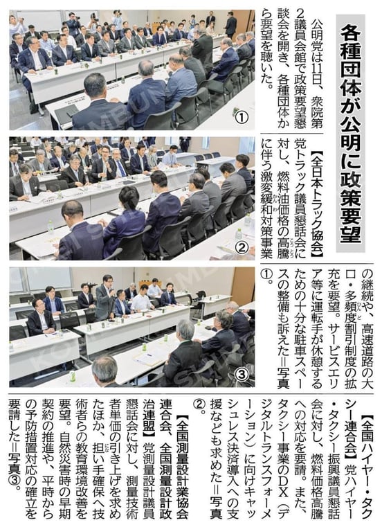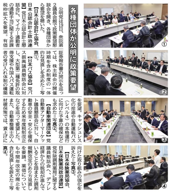 2024年9月20日の公明新聞に掲載されました。 各種団体が公明に政策要望