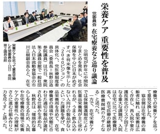 2025年10月16日付の公明新聞に掲載されました。 栄養ケアの重要性を普及/党委員会、在宅療養など巡り議論