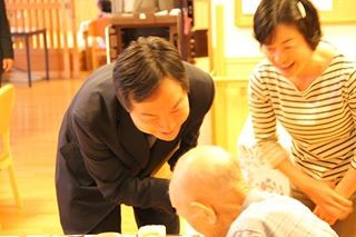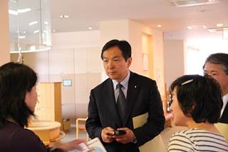 埼玉県毛呂山町のふれあいの里どんぐりを視察。輿水議員が手を取る写真の女性は目が見えず、耳も聞こえません、が、最近パソコンを覚えてメールをしている、と元気いっぱいでした。