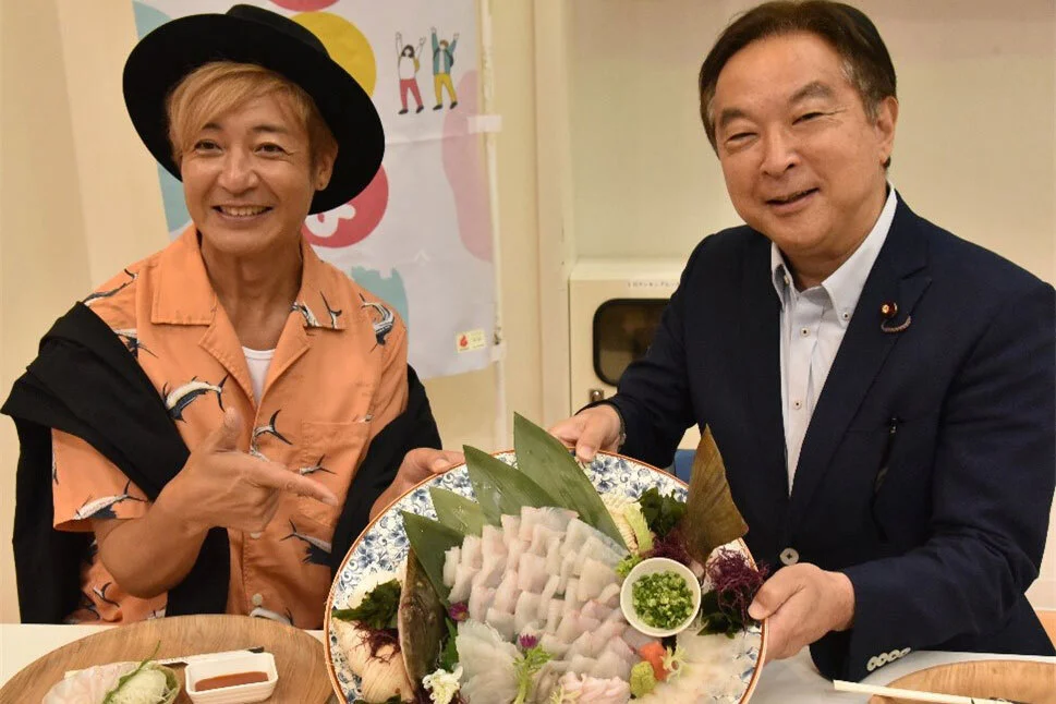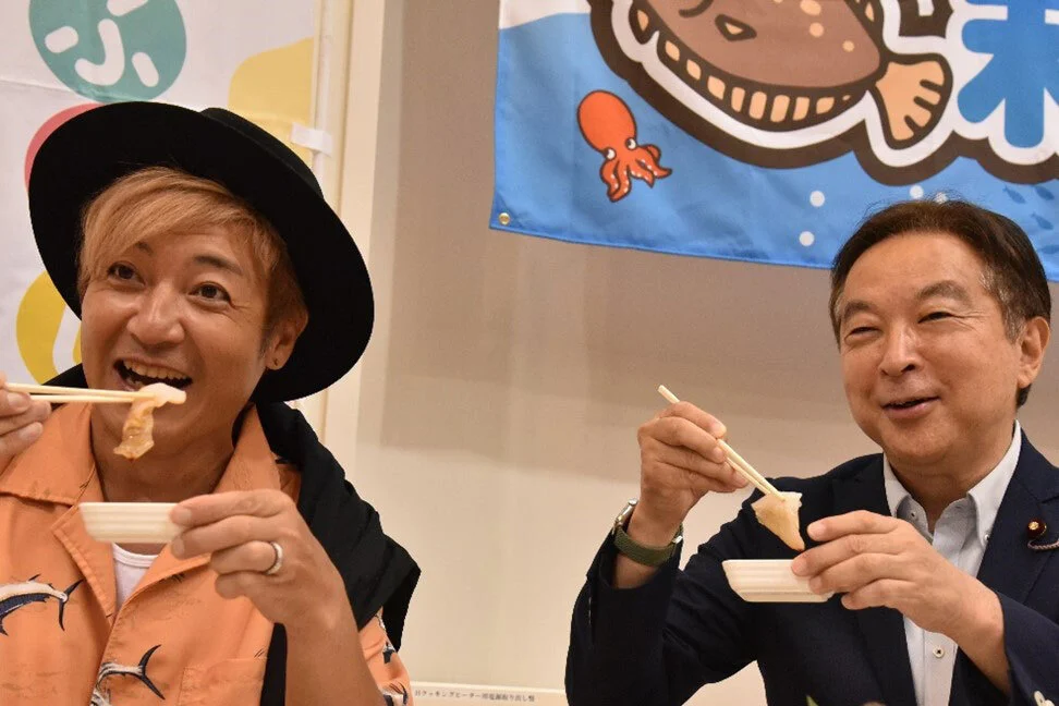 主催者代表としてあいさつし、ゲストのつるの剛士さんとともに「常磐もの」のヒラメを試食したほか、参加者の皆様と懇談しました。